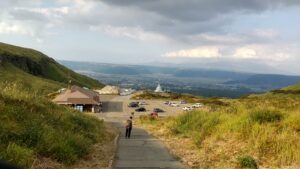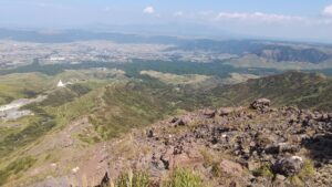 阿蘇市内からちょっと寂しい道をどんどん上がって登山口駐車場に到着。昔はロープウェイとかあったみたいだけど今は廃墟状態で最果て感がハンパないです。