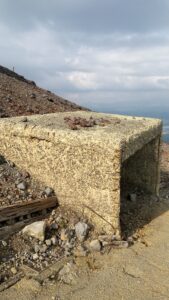 廃墟になり撤去中のロープウェイ沿いは登山道というよりコンクリートの道になってます。途中には小型の避難豪がいくつかあります。