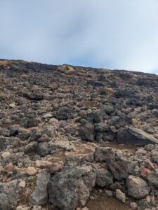 韓国岳避難小屋から山頂を目指して歩き始めました。