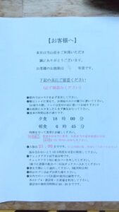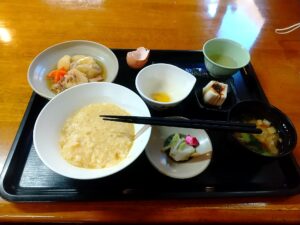 時間になったので食堂に向かいます。時間通りに行ったのですが実はちょっと出遅れ。もう配膳が始まってました。どうすればいいのか分からなかったので隣の方に聞くと「もらった食券まずは出すんだよ」と教えてもらい番号が呼ばれるまで待ちます。10分ぐらい待ったかな?やっとご飯にありつけました。あまりにお腹減ってて写真撮るの忘れてました…。