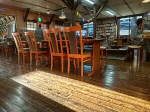 夜が明けて、7時ごろ起床。8時ごろに食堂に行きましたが、やっぱり登山者の朝は早く、食堂に行くまでの玄関でもすでに出発の格好をした人が多く、もう食堂で食事をしていた人もまばらでした。