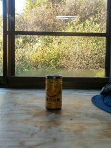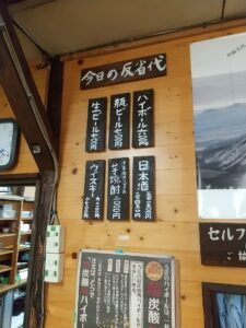 おつまみと一緒にビールとコーラ飲んで一休みしながら山小屋の注意事項を読みます。