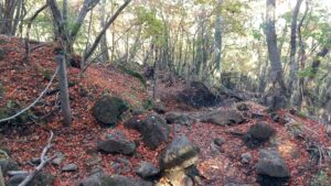 湿原を過ぎるとまた、山の中に入り落ち葉の道をすすみます。